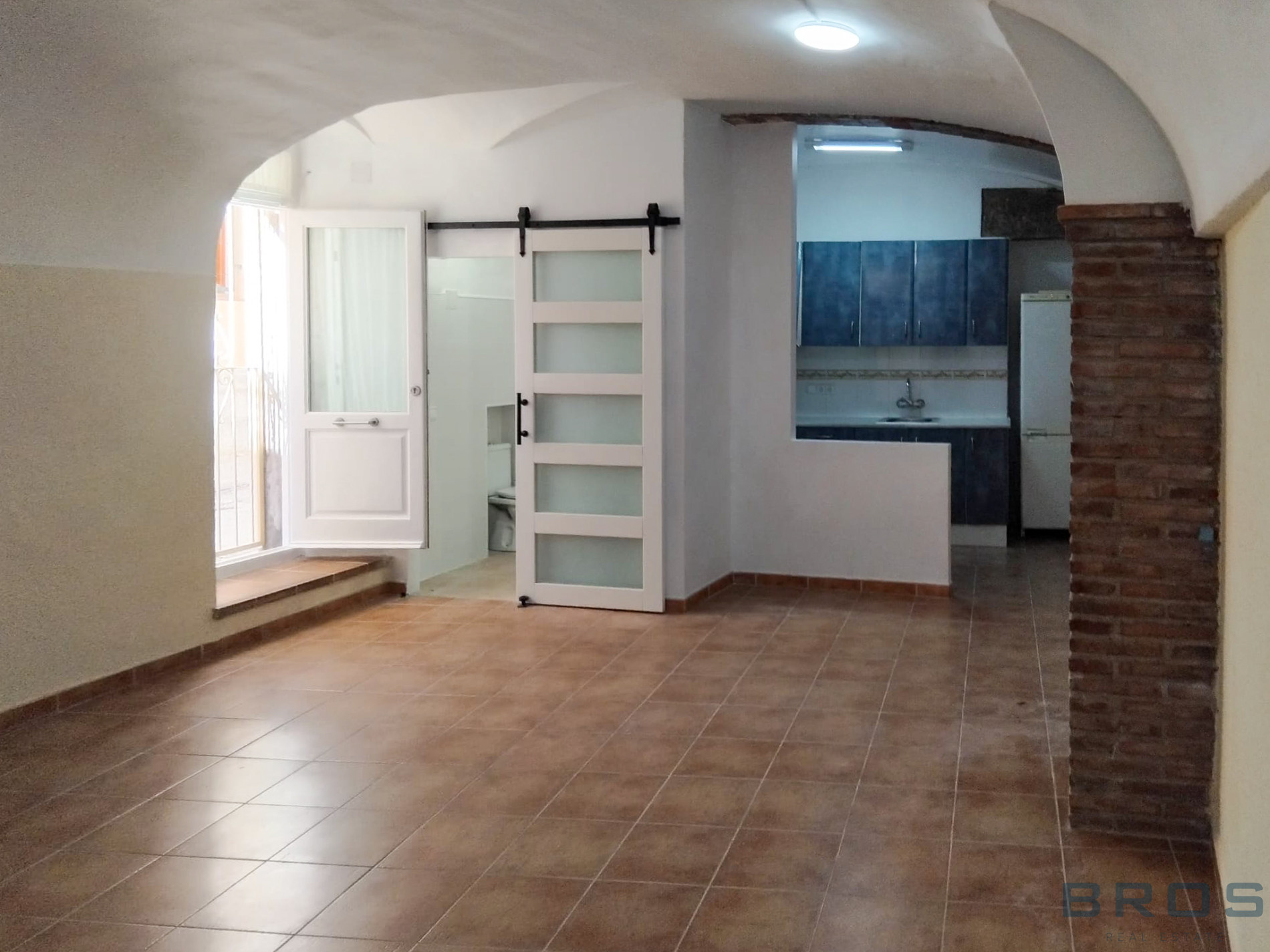 Al acceder, nos recibe un gran espacio diáfano con suelos cerámicos, ideal como salón-comedor y zona de estar. La amplitud del ambiente y la estructura original contribuyen a una sensación de calidez y autenticidad.