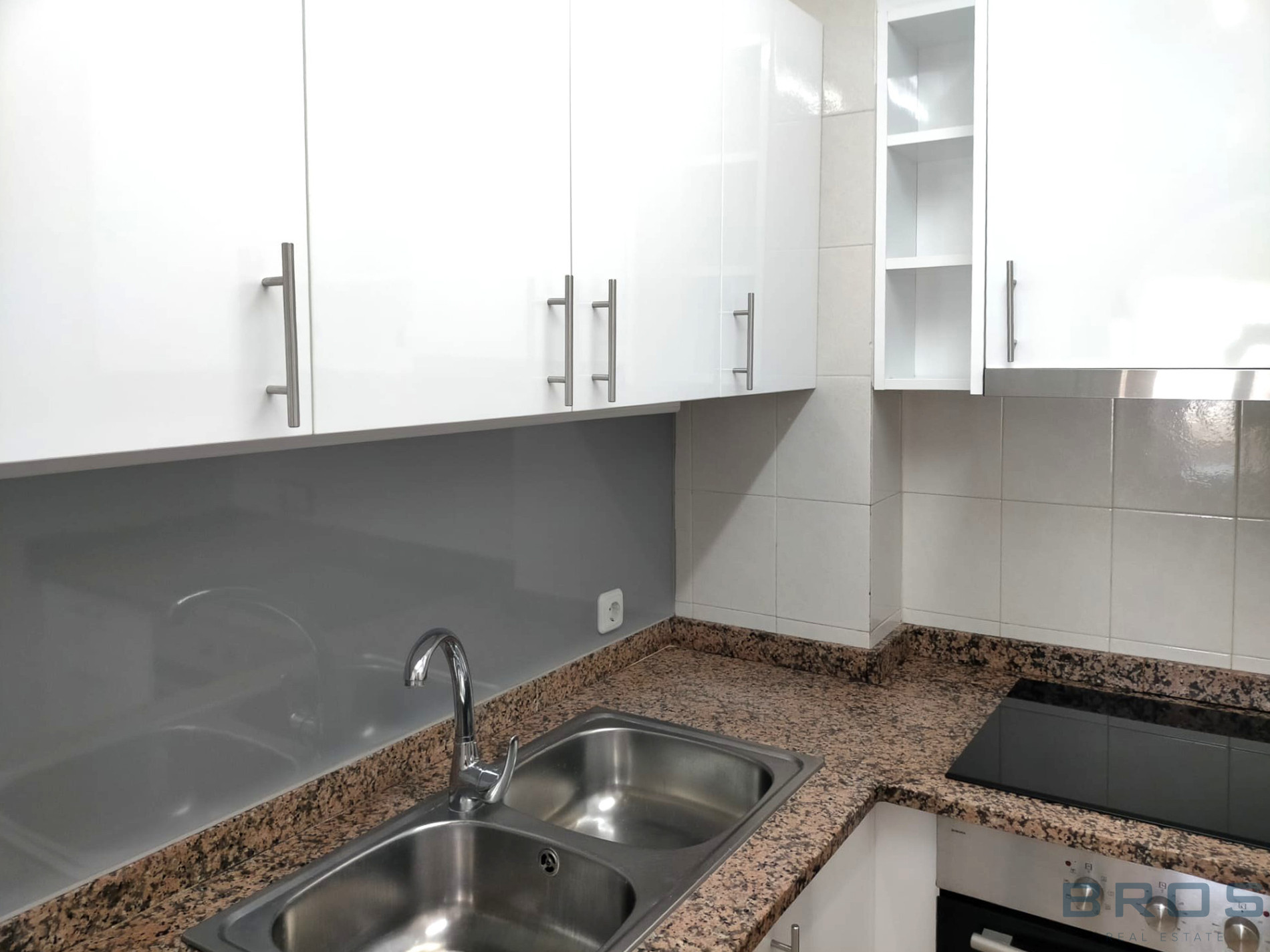 La cocina es abierta y cuenta con pasaplatos hacia el salón, lo que aporta mayor amplitud y funcionalidad al espacio.