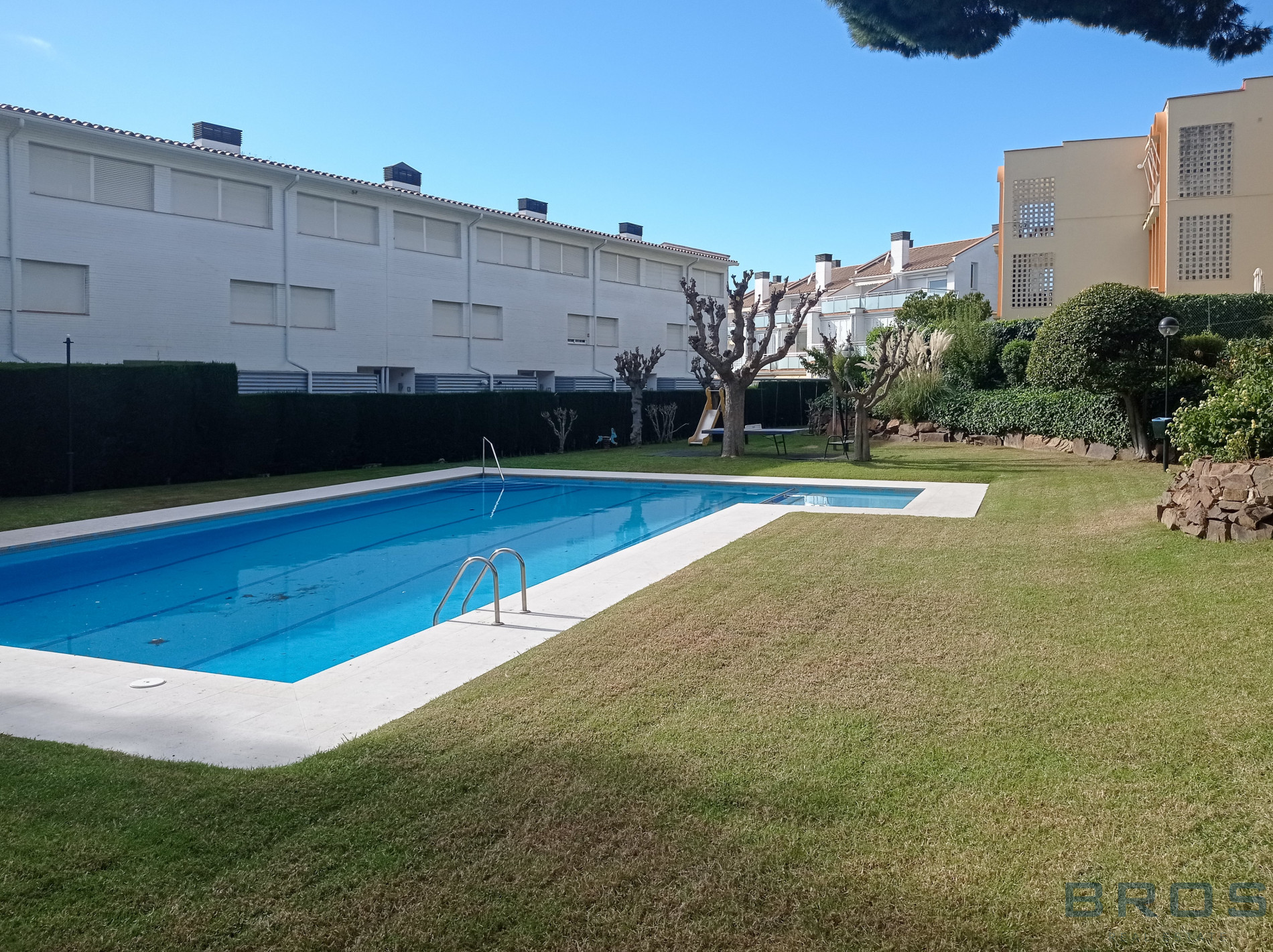 En la calle Tramuntana de S’Agaro, en un edificio construido en el año 1980 que se ha rehabilitado recientemente y que dispone con una zona comunitaria ajardinada con piscina y zona de juegos.